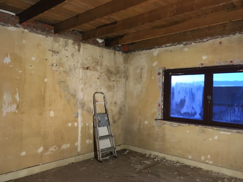 De kamer had wel een paar verrassingen in petto, onder andere een hoop stroomdraden die totaal onveilig aangelegd waren (en nu gelukkig verwijderd zijn) en een rotte balk in het plafond, welke nog aangepakt moet worden.