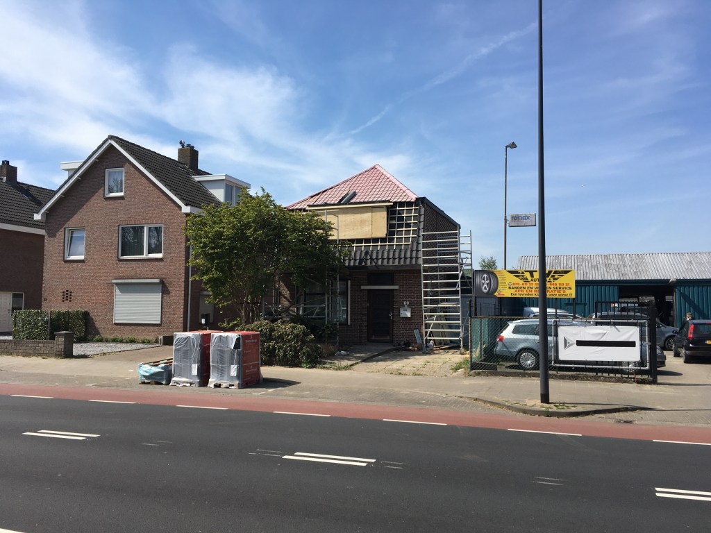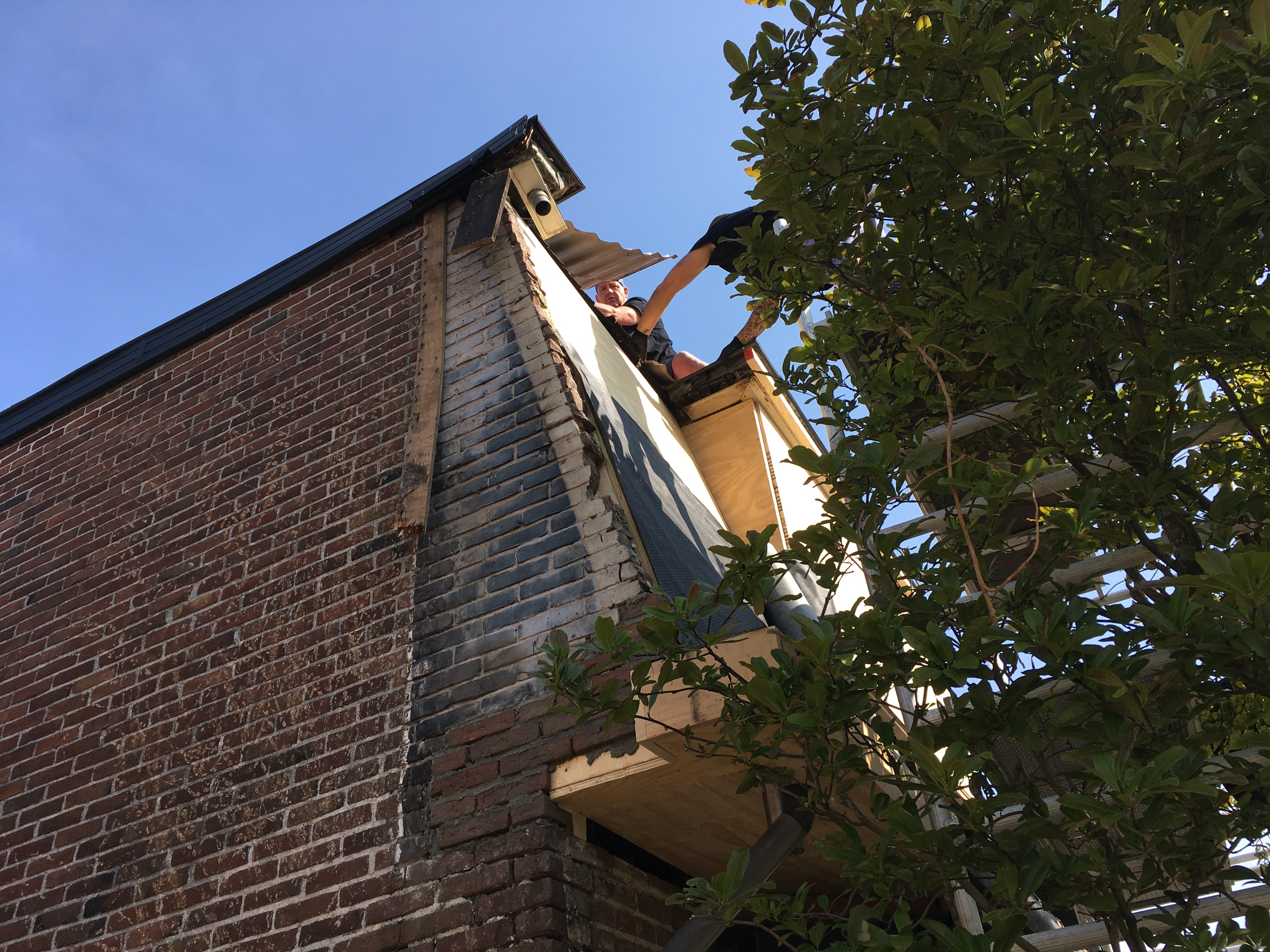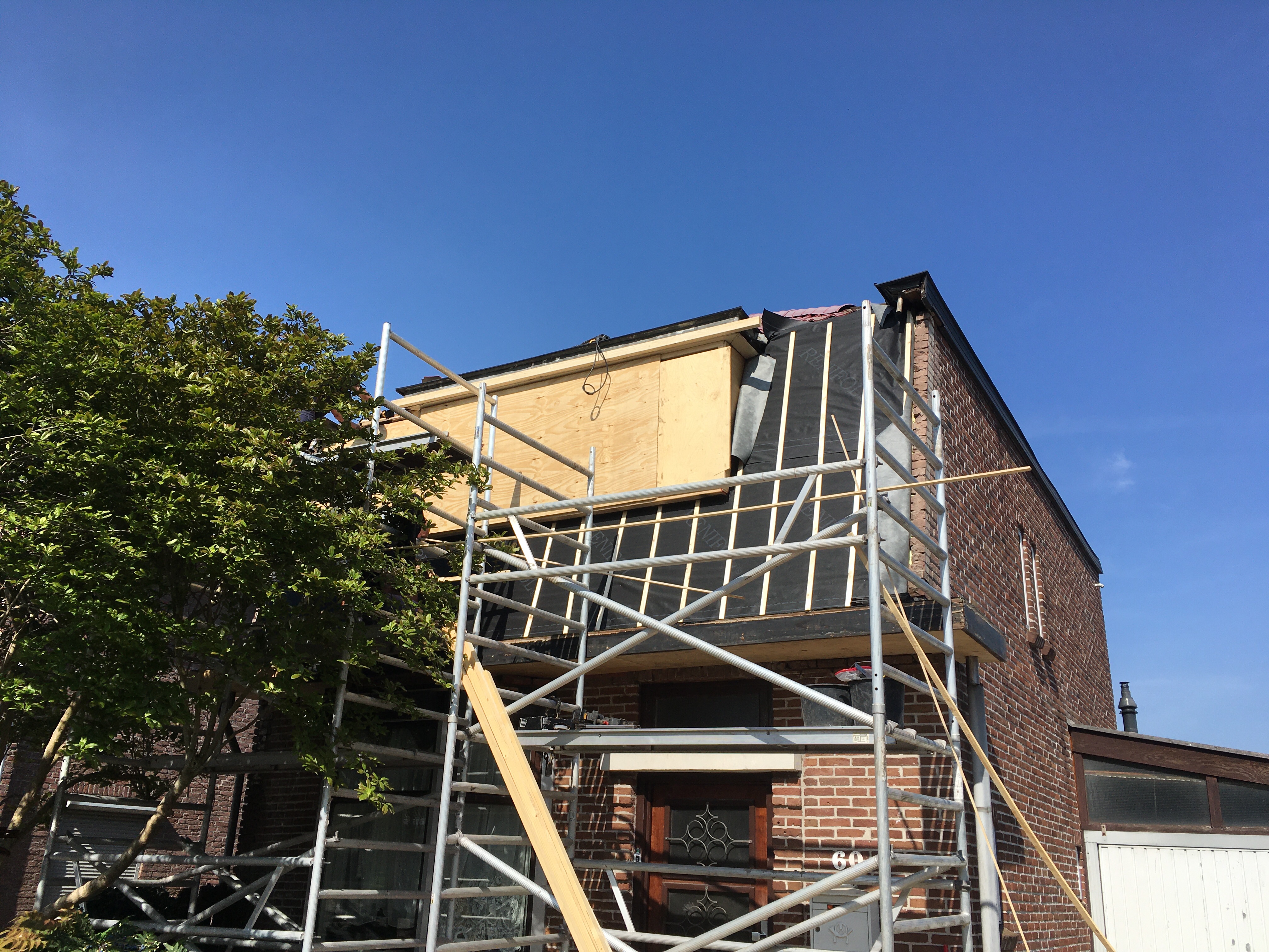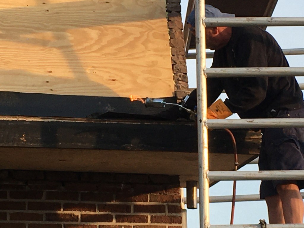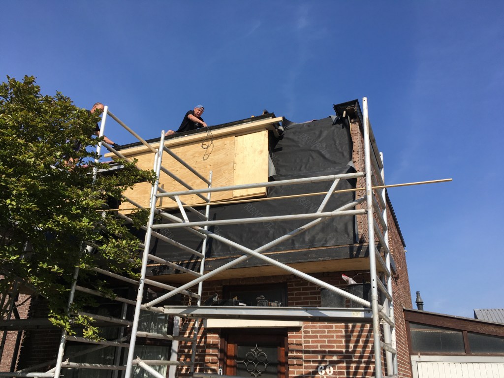Vandaag zijn zoals beloofd de bitumen op het afdak vastgebrand.
