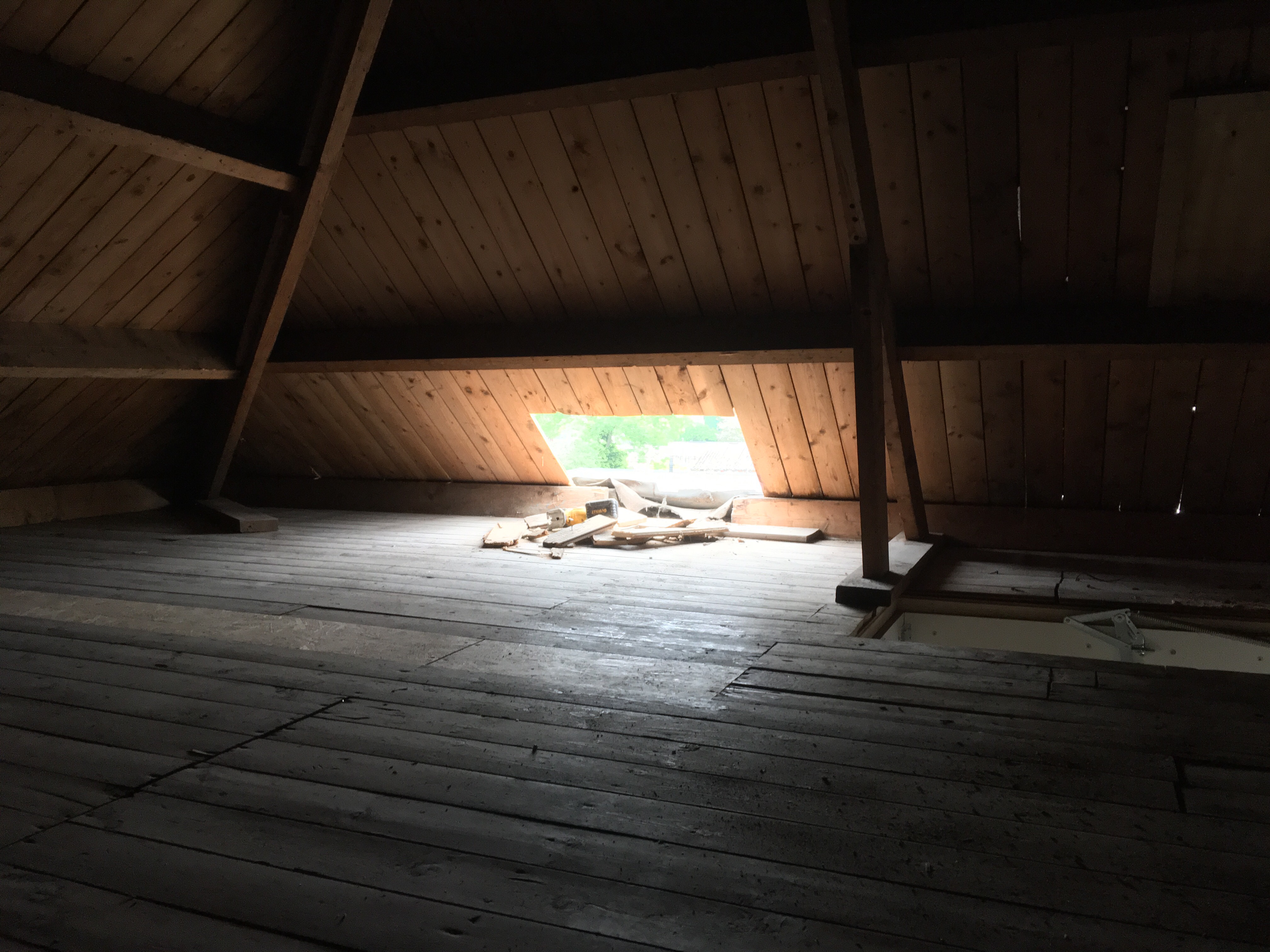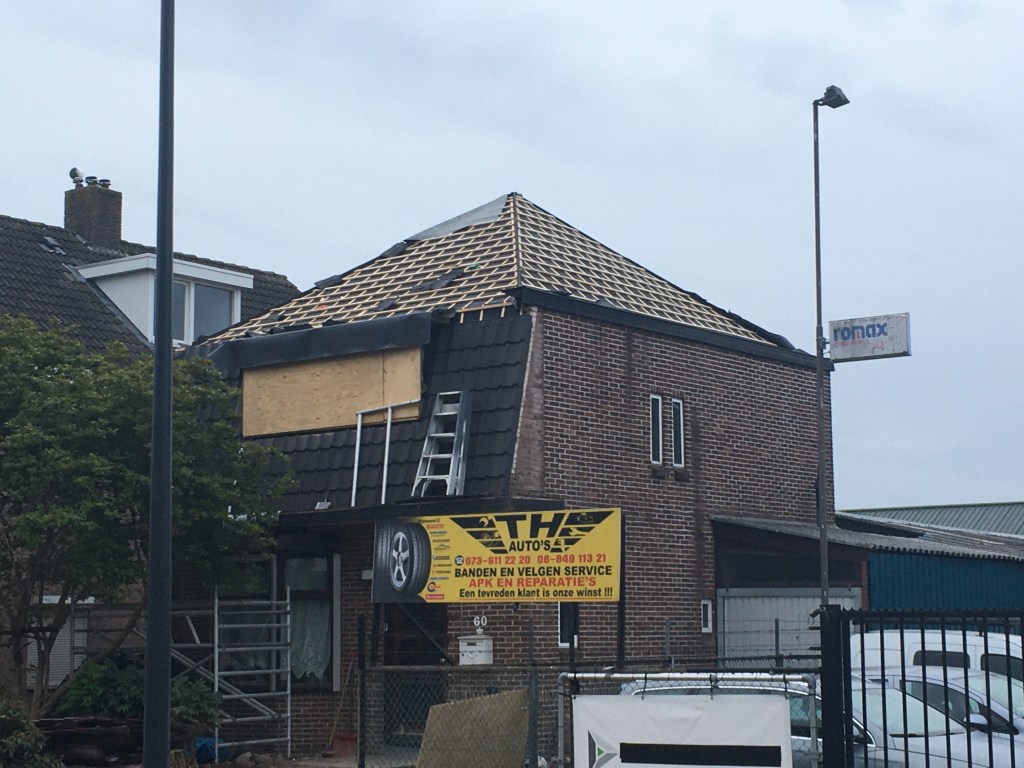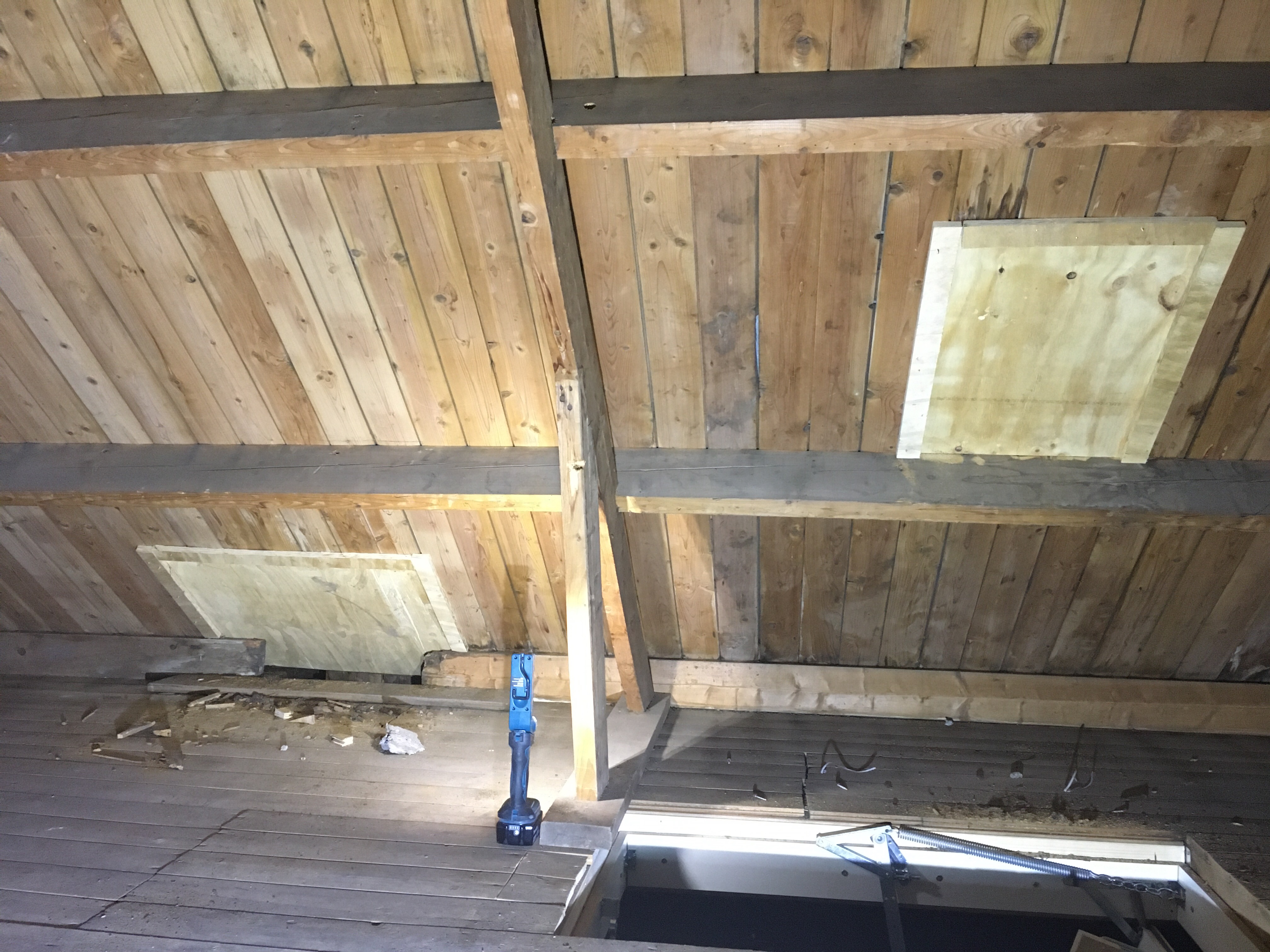 Gaten en rotte plekken (eigenlijk uitsluitend rond de gaten van bijvoorbeeld de beluchter van de oude badkamer) zijn vervangen met nieuw hout.