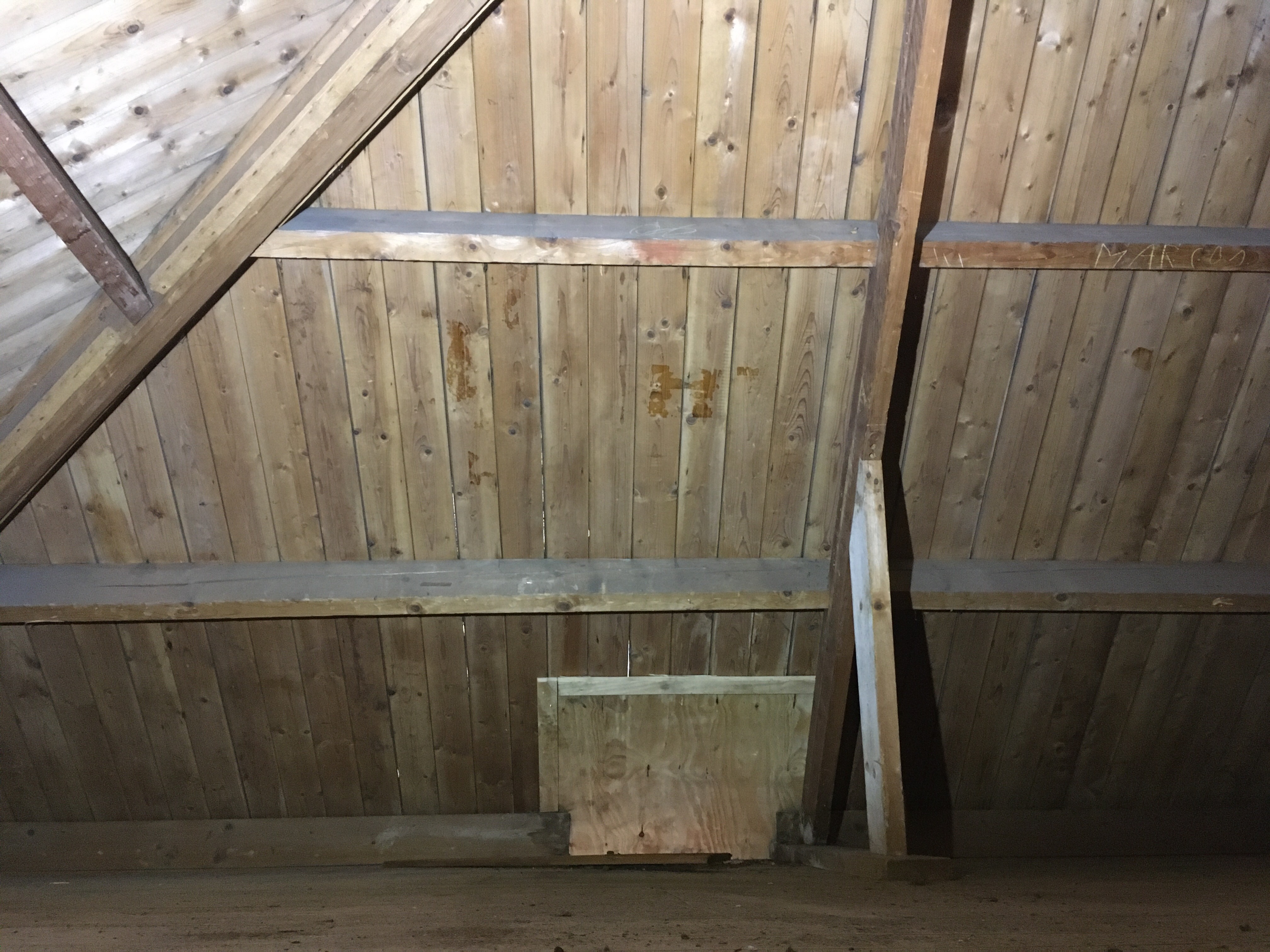 Links de achterkant, rechts de zijkant met reeds gezaagde pannen.