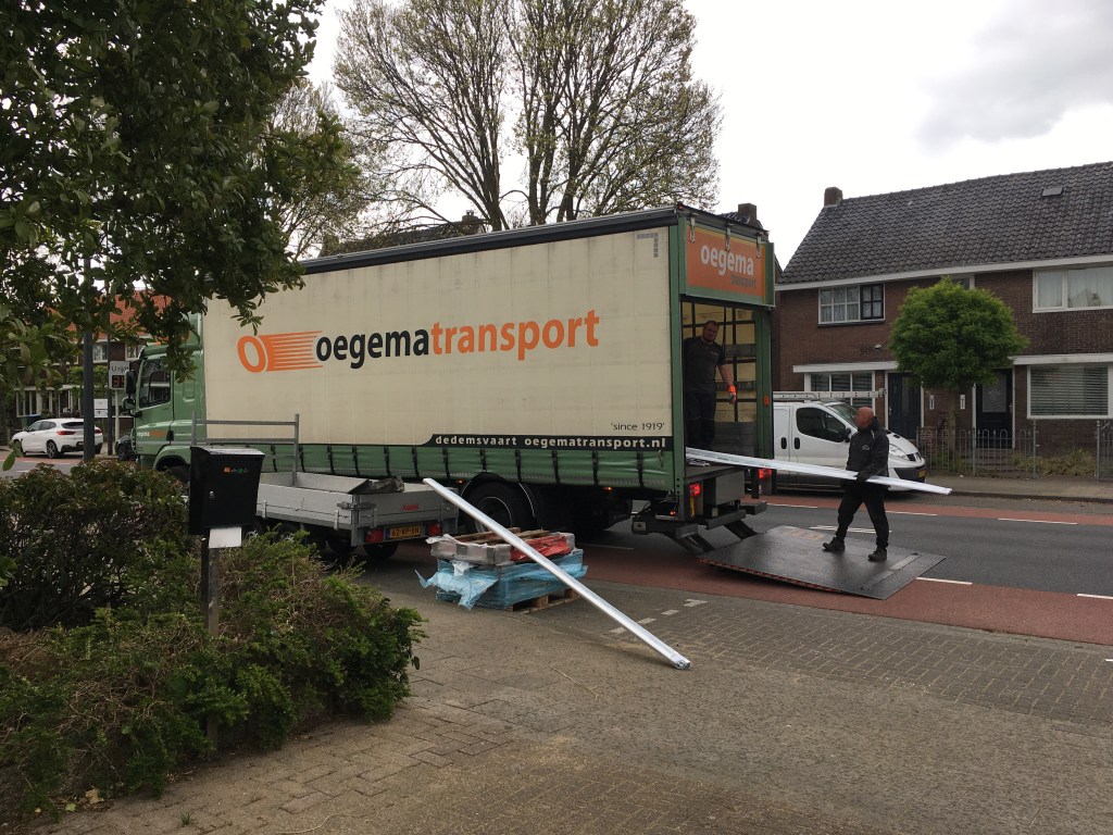 Aan het einde van de vrijdag is het Keralit (de kunststof bekleding van de dakkapel, het afdak en de goten) bezorgd, en begon het weer om te slaan.