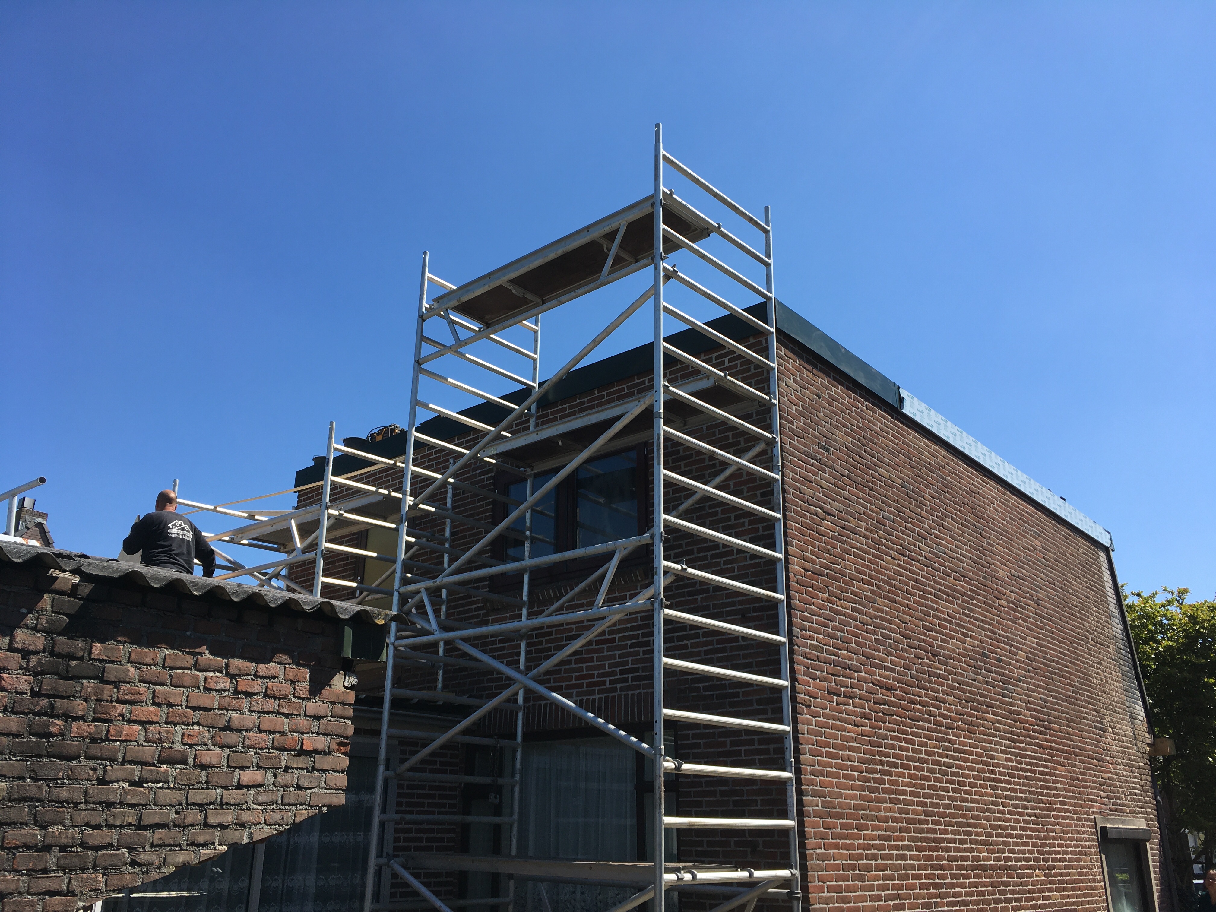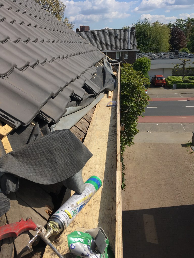 De afgelopen week hebben Frank en Frank gewerkt aan de goten. De oude waren lek, en helaas was dit niet zonder gevolgschade. Alle planken (en een aantal stukken balk) waarop de goot normaliter rust waren rot en moesten vervangen worden.