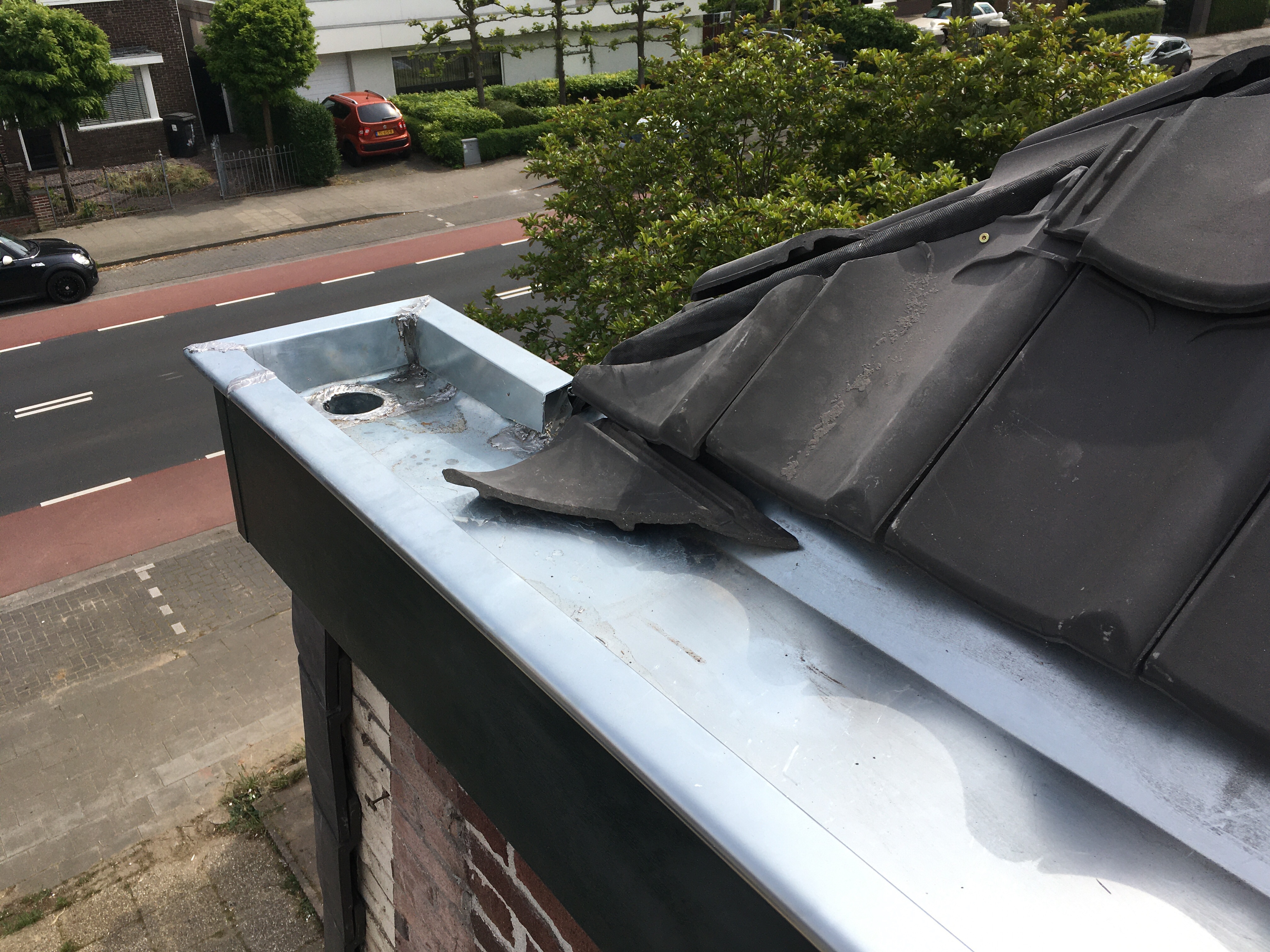 Er lagen maar liefst drie goten op het dak. Waarom de oude weghalen als je er ook gewoon eentje in kan leggen…