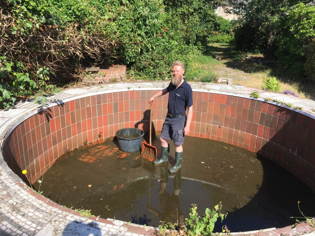 In de tuin hebben we een mooie muggenbroedpoel / stinkvijver / beestjesverzamelplaats genaamd zwembad. Tijd om daar iets aan te doen.