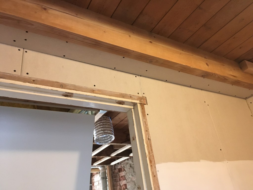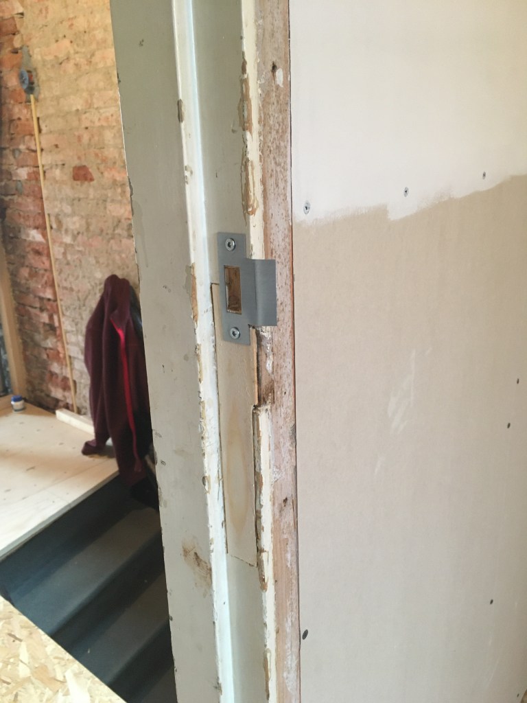 Dan hoofdstuk deur. Deuren plaatsen is geen gemakkelijke klus. Het monteren komt erg nauwkeurig, anders hangt de deur scheef en loopt deze niet soepel. Nu is er niets recht in een huis van 96 jaar oud, maar de uitdaging is om dit toch mooi er uit te laten zien.