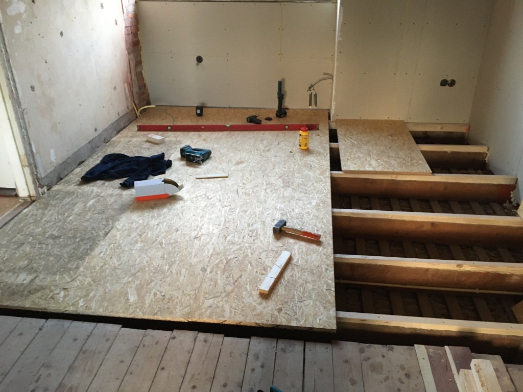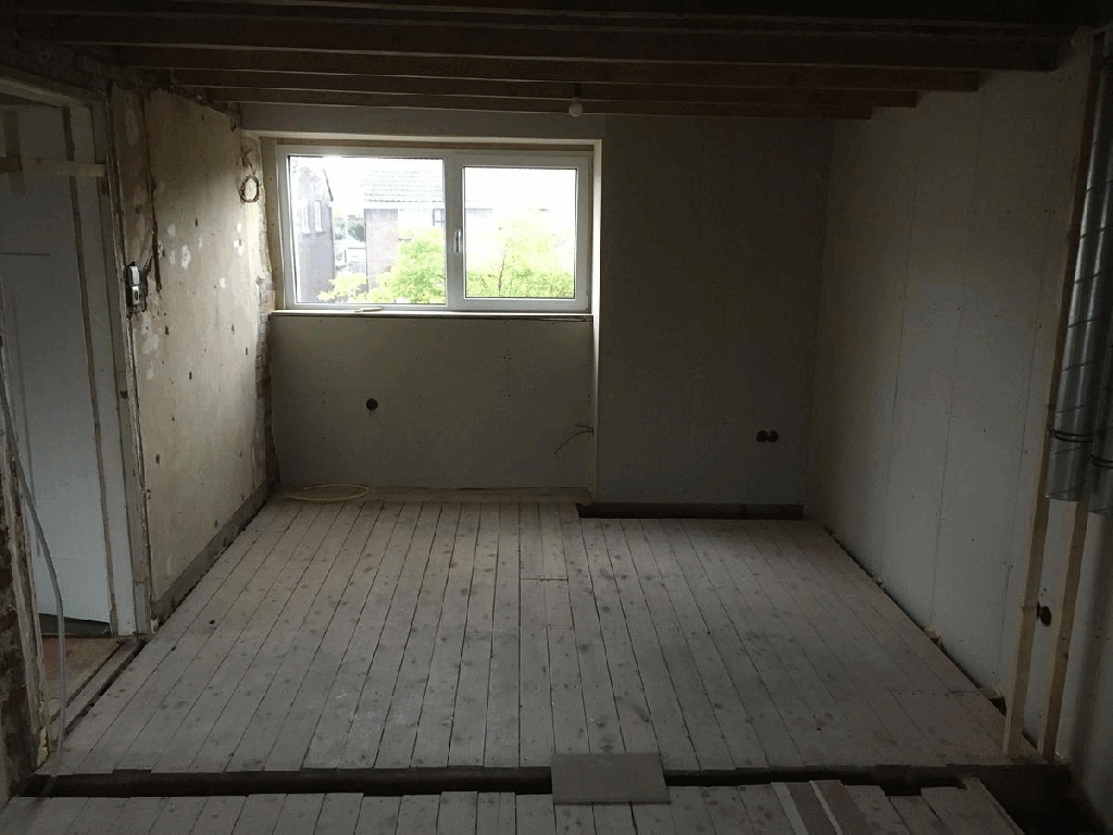 Dit was de voorste helft van de ruimte die nu nog één maar straks twee kamers is. We moeten dit trucje dus nog keer herhalen voor andere helft. Aangezien dit proces exact het zelfde zal zijn zal ik hier waarschijnlijk geen verslag van doen, maar zal het volgende bericht een ander stukje eerste verdieping beslaan.